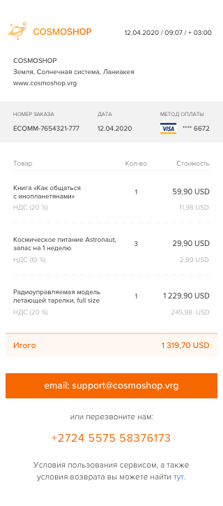 - адрес электронной почты отправителя (домен EtoPlatezhi или домен, принадлежащий веб-сервису мерчанта);